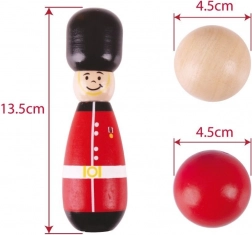 Élvezze a szórakoztató klasszikus teke játékot, ahol a bábuk szeretnek feldőlni és visszaállni. Hat fa tekebábu és egy fa bowling golyó remek eszköz az ügyesség és koordináció fejlesztéséhez. Készlet tartalma: