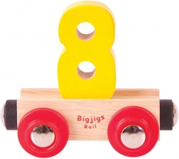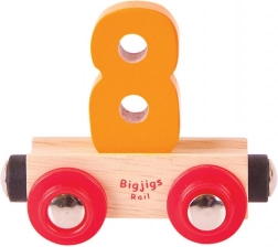 Ez a 8-as számú vagon minden fa vonatpályát egy szórakoztató és didaktikus elemmel bővít. A levehető szám könnyen cserélhető betűkre vagy más számjegyekre, így a gyerekek saját neveket, feliratokat és számokat rakhatnak ki. A mágneses csatlakozóknak köszönhetően a vagon gond nélkül összekapcsolható a kedvelt fa vonatrendszerek mozdonyaival és vagonjaival.