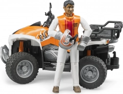 A BRUDER bworld szett valósághű quadot és vezetőt kínál kreatív, akciódús játékhoz. A modell hűen utánozza a valódi gépet, beleértve az első és hátsó rugózott tengelyeket, a részletes abroncsokat és a masszív felépítést a gyerekszoba „terepére”.