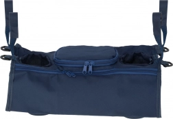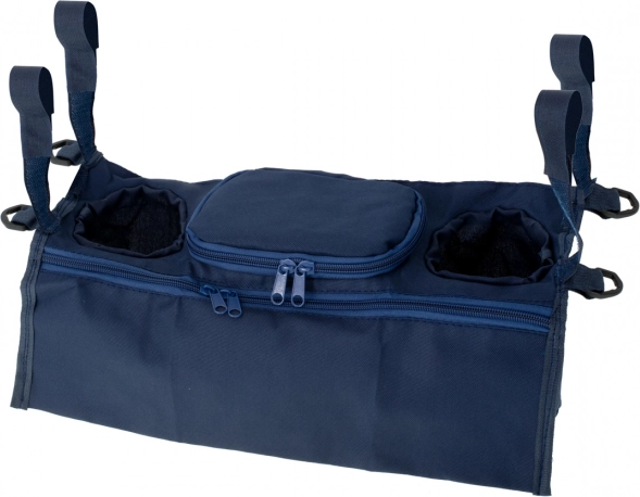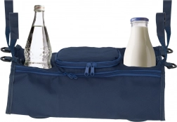 Praktikus babakocsi-szervező két palacktartóval, tágas cipzáras zsebbel és egy kisebb cipzáras zsebecskével. Könnyen rögzíthető tépőzáras pántokkal, és mindent kéznél tart – a pelenkáktól és törlőkendőktől a játékokon, telefonon át a tejes- vagy vizespalackig.