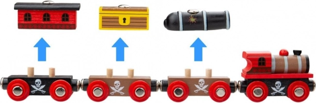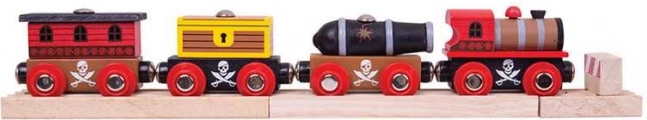 Kalóz vonat a Bigjigs Rail-től ideális választás a kis kalandoroknak. Ez a készlet tartalmaz egy mozdonyt és három részletesen kidolgozott vagont klasszikus mágneses csatlakozással. Kompatibilis minden fa vasúti rendszerrel.