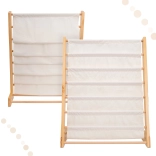Elegáns és praktikus fa könyvespolc, amely könnyedén a gyermekszoba részévé válik. Akár 6 textilpolcot is kínál, amelyek elegendő helyet biztosítanak a könyveknek, színezőknek és egyéb gyermekfelszereléseknek. A polc magassága 76,5 cm, amely lehetővé teszi, hogy a gyerek könnyedén elérje az összes polcot.