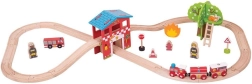 Ez a tűzoltóállomás témájú fa vonatpálya bármely szobát mentőközponttá varázsol. A gyerekek áthaladhatnak a tűzoltószertár alagútján, versenyezhetnek a tűzoltóautóval, útnak indíthatják a mentővonatot levehető vagonokkal, és segíthetnek a tűzoltóknak létrával vagy tűzcsappal. A színes részleteknek és a masszív kivitelnek köszönhetően a játék kiválóan fejleszti a képzelőerőt és helyzetmegoldásra tanít.