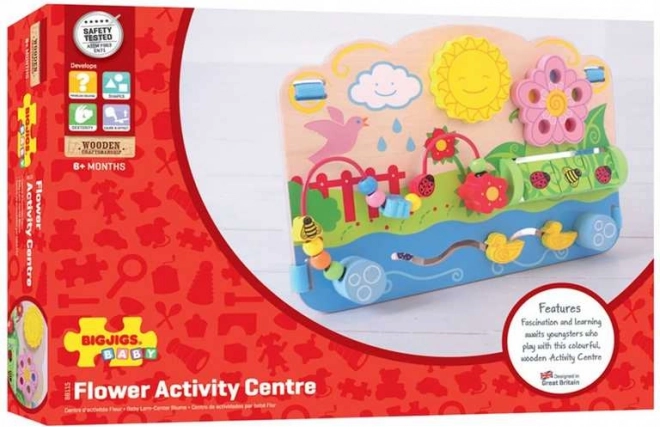 A BIGJIGS BABY Virágok fa készségfejlesztő tábla változatos tevékenységekkel segíti a gyerekek természetes fejlődését 6 hónapos kortól. A kicsik tologathatják a kacsákat a pályán, forgathatják a labirintust, és segíthetnek a katicának, a poszméhnek és a pillangónak fel-le haladni a gyöngyös útvesztőn. Minden elem úgy lett tervezve, hogy ösztönözze a felfedezést, valamint fejlessze a fogást és a koordinációt.
