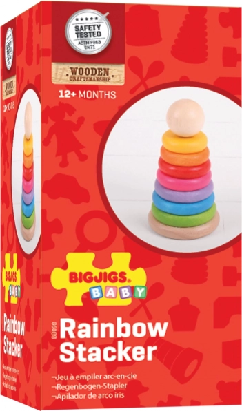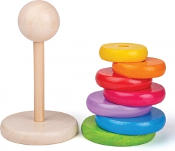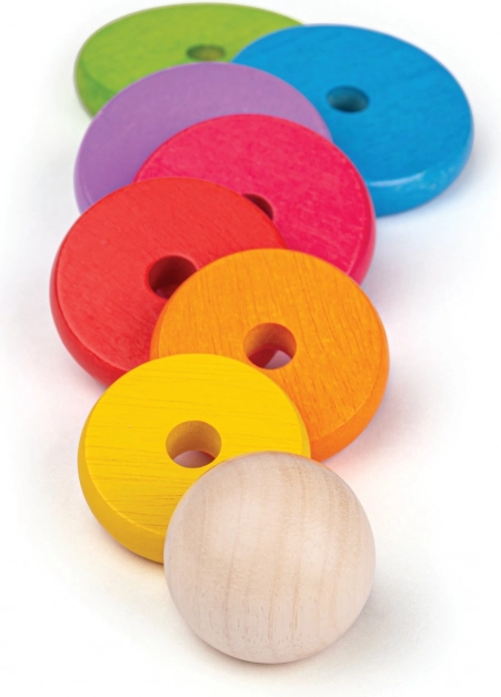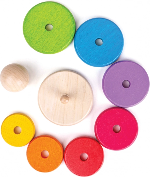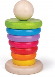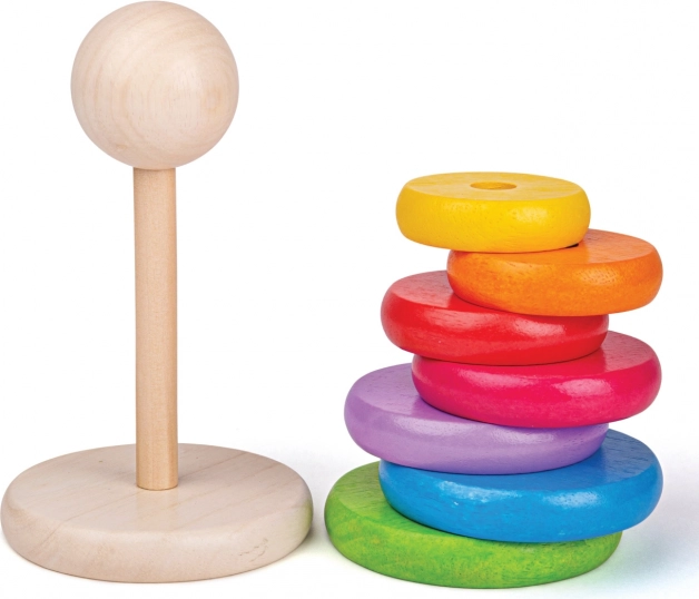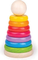 A játék 9 darab, szivárvány színű gyűrűt tartalmaz, amelyek feldobnak minden játékot és segítenek a színek megkülönböztetésében.