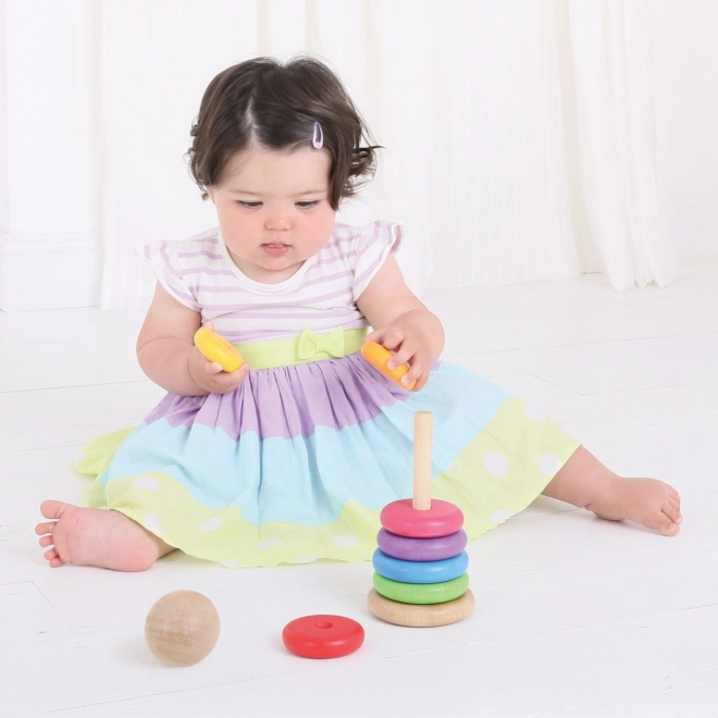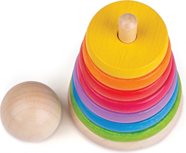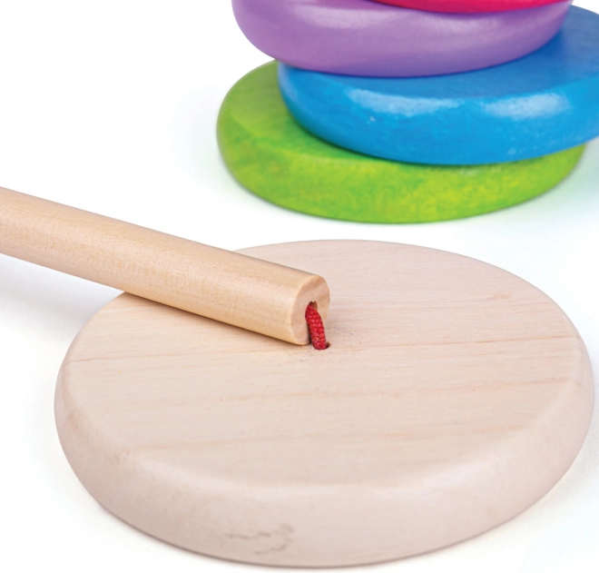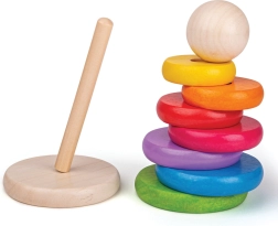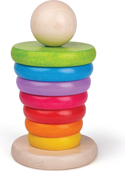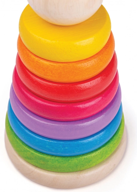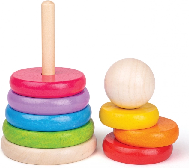 Ez a fa rakosgató figura ideális játék a finommotorika és a kéz–szem koordináció fejlesztéséhez. A gyűrűk méret szerinti rakosgatása nemcsak szórakoztató, hanem megtanítja a gyerekeket a méretek és színek felismerésére is.