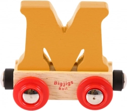 Ez a minőségi fa vagon M betűvel játékos, oktató elemmel bővíti bármelyik vonatpályát. A betű levehető, szabadon kombinálható más betűkkel vagy számokkal – alkoss nevet, becenevet vagy üzenetet. A mágneses kapcsolók könnyű összekapcsolást biztosítanak a Bigjigs Rail rendszer többi vagonjával és mozdonyával, valamint más elterjedt fa vonatpályákkal.