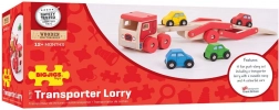 A Bigjigs Toys végtelen szórakozást kínál a fa autószállító kamionnal, amely nemcsak órákon át tartó játékot biztosít, hanem segíti a szem-kéz koordináció fejlődését is. A vontató felső része könnyen leengedhető, így a kis járművek fel- és lehajtása gyerekjáték.