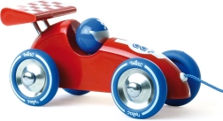 Stílusos húzós versenyautó lakkozott fából, piros-kék színkombinációban, amely 1 éves kortól örömet szerez a kis versenyzőknek. Gumírozott fém kerekekkel a csendes, biztos gördülésért, erős zsinórral a húzáshoz és minőségi VILAC kidolgozással. Ideális a egyensúly és mozgáskoordináció fejlesztéséhez, valamint szórakozáshoz otthon és útközben. Franciaországban készült.