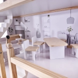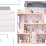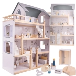 A ház akár négy emeletes, és rengeteg helyet kínál a játékhoz! A felső szinten található fa terasz különleges hangulatot ad az egész háznak. A sokféle helyiség között van fürdőszoba, dolgozószoba, nappali, étkező konyhasarokkal és hálószoba. Mindegyik teljesen felszerelt, és kész fogadni az új babacsaládot. A nagy méreteknek köszönhetően nemcsak a legkisebb babák férnek el benne, így nem kell attól tartanod, hogy gyermeked kedvenc barátja kimarad a mókából!