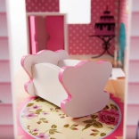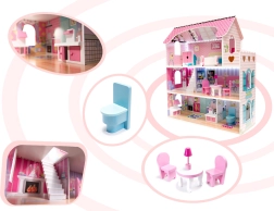 A magassága lehetővé teszi, hogy még a nagyobb gyerekek is kényelmes testhelyzetben játszhassanak. A babaház emellett nagyon stabil – játék közben nem borul a gyermekre. A ház LED szalagos világítással rendelkezik, amelyet gyermeke preferenciái szerint helyezhet el a villában.