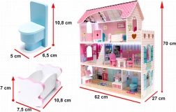 Az egész babaház 3 különálló szintből áll, amelyekben összesen 5 szoba található – minden tökéletesen utánozza egy valódi lakóház felépítését. Minden szoba más stílusban készült, a dekor és a bútorzat a helyiség jellegéhez és funkciójához igazodik. Minden egyes bútordarab kézzel készült, nagyfokú részletességgel és kiváló minőségű kivitelezéssel.