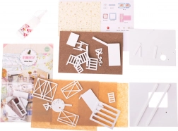 A csomagban mindent megtalál: a szoba építőelemeit, berendezési és dekorációs elemeket, ragasztót, valamint részletes, képes útmutatót. A világítást 2× AAA 1,5 V és 3× LR54 1,5 V elemek táplálják (az elemek nem részei a csomagnak). Ajánlott 8 éves kortól. A kész modell méretei: 17,1 × 13 × 11,6 cm; a csomag mérete: 25 × 18 × 6 cm.