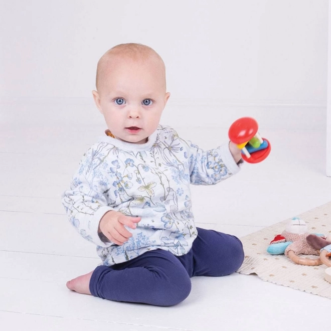 A Bigjigs Baby Szivárványhenger időtálló fa csörgő, amely élénk színeivel és kellemes hangjával nyűgöz le. A három színes elem gurítás vagy rázás közben billeg, és finoman a támaszokhoz ütődik, így ösztönzi a babát a további felfedezésre, fogásra és mozgásra.