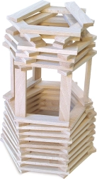 Az egyes lapocskák lehetővé teszik tornyok, hidak és saját építészeti alkotások szabad megépítését. A gyerekek gyakorolják a fantáziát, a türelmet és a finommotorikát.
