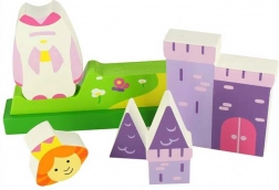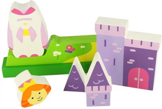 A szett 7 darab, kiváló minőségű, élénk színű faelemet tartalmaz, amelyekből egy varázslatos, hercegnős motívumú vár állítható össze. A játék támogatja a koncentrációt és a türelmet, kompakt méreteinek köszönhetően utazáshoz is remek.