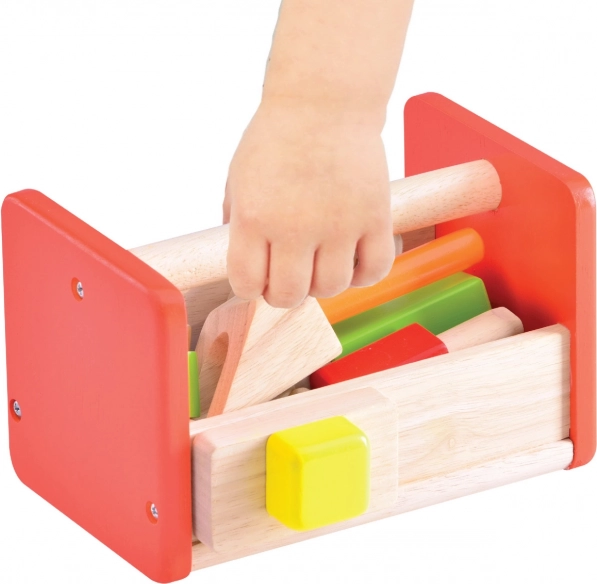 A készlet tartós tömör fából és fa-műanyagból készült, ami hosszú élettartamot és biztonságos játékot garantál. A természetes megjelenés és az élénk színek vonzó kombinációja minden gyermek figyelmét felkelti. A gyerekek megtanulják rendeltetés szerint szortírozni az eszközöket, és a kompakt kialakításnak köszönhetően helyet is spórolnak.
