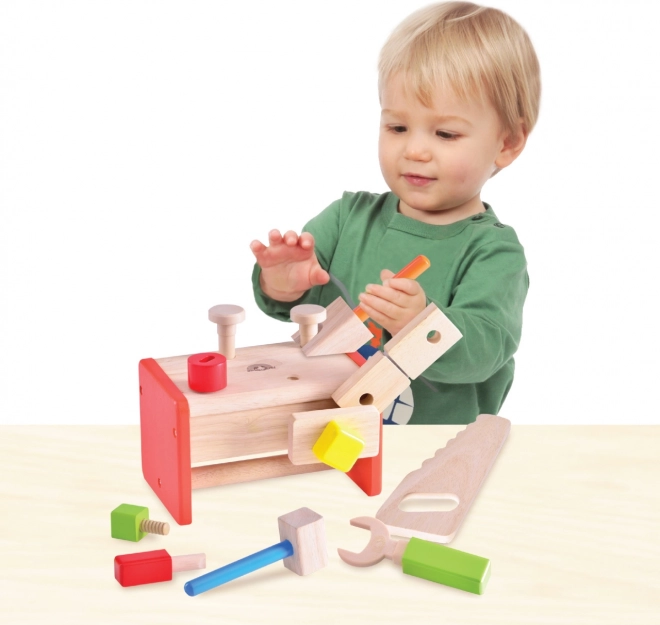 A ládika könnyedén munkapaddá alakítható satupaddal, így a gyerekek egyszerre játszhatnak és tanulhatnak.