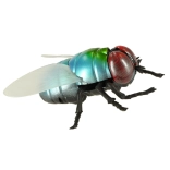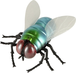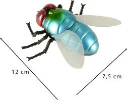 A metál kékeszöld test, a piros szemek és az átlátszó szárnyak a játékot a légy hű másává teszik – tökéletes tréfákhoz és oktatáshoz.