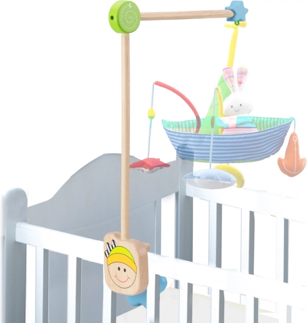 A masszív fa szerkezet minimalizálja a rezgéseket és a kilengést, így a körhinta biztonságosan és az ideális magasságban függ a baba felett.