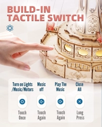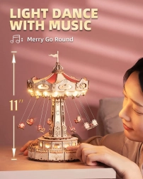 Összeszerelés után a körhinta egyenletesen forog, és a Merry Go Round dallamot játssza. Teremts otthonodban a klasszikus vidámparkok hangulatát – vizuális és zenei élmény egyben.