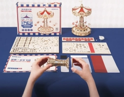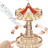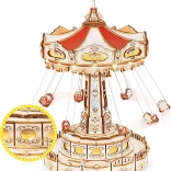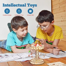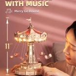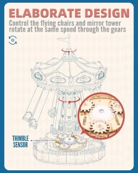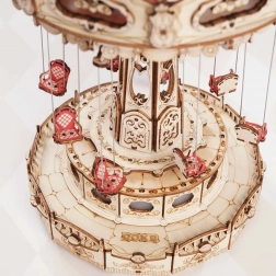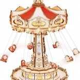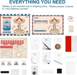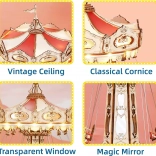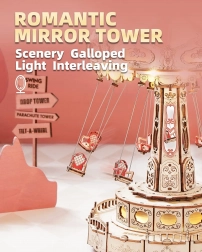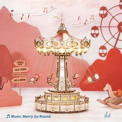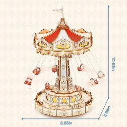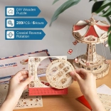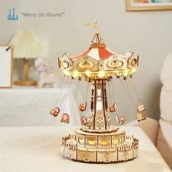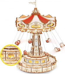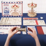 Ez a 3D zenélő doboz kirakó egy elegáns, gazdagon díszített láncos körhintát ábrázol természetes és színes tónusokkal. Összeszerelés után a körhinta a motornak köszönhetően megpördül, LED világítással felragyog, és lejátsza a Merry Go Round dallamot, amely nosztalgikus, romantikus hangulatot varázsol. A készlet szétszerelt állapotban, részletes útmutatóval érkezik – ideális hétvégi alkotóprojekt.