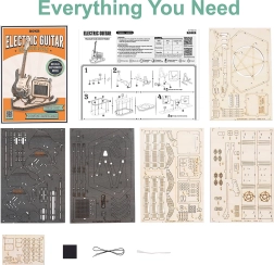 A készlet 140 elemet tartalmaz alacsony nehézségi szinttel, így kezdőknek és nagyobb gyerekeknek is remek választás. A áttekinthető útmutatónak köszönhetően a gitárt kb. 1,5 óra alatt összeállíthatja. Az eredmény egy realisztikus elektromos gitár erősítővel, amely remek ajándék zenerajongóknak.