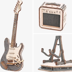 Ez a fa 3D puzzle elektromos gitár minden zenerajongónak és az elegáns dekorációk kedvelőinek örömet okoz. A modell kiállításra készült – mozgó alkatrészek nélkül, letisztult, természetes megjelenéssel és precízen kivágott részletekkel, amelyek bármely enteriőrben jól érvényesülnek.