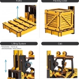 Ez a kezelőgép-építőkészlet az erős gépek és az okos mechanizmusok világába vezet. A fa 3D targonca kirakó 139 lézerrel kivágott elemből áll, amelyekből részletgazdag, mozgó részekkel rendelkező modell építhető. Az építés intuitív, és a mellékelt útmutatóval kezdők számára is könnyen megoldható.