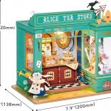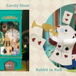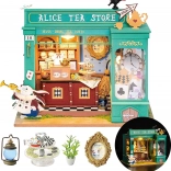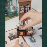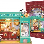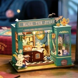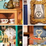 Fedezd fel a fantáziával teli miniatűr világot – a zöld árnyalatokra hangolt teabolt a Fehér Nyúl, a zsebóra és a sakktáblamintás padló motívumaival az európai délutáni tea hangulatát idézi. A LED világítás felkapcsolása után a modell elbűvölő dekorációvá válik kellemes esti atmoszférával.