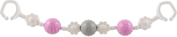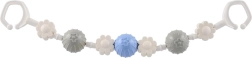 Ez az univerzális babakocsi-játék forgó golyócskákat és virágformákat kombinál, amelyek támogatják a finommotorika fejlődését, valamint a látást és a hallást. A különböző felületek és színek serkentik a kíváncsiságot, miközben a diszkrét csörgés megnyugtatja a babát és lefoglalja a séták során.