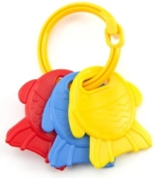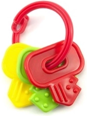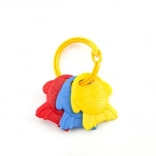 Vidám, kulcs alakú gyerek csörgő három műanyag függődísszel, amely minden babát felvidít. Támogatja a finommotorika fejlesztését, a vizuális érzékelést, és szórakoztató hangingerrel szolgál. Színes mix – konkrét szín nem választható, a raktárkészlet függvényében szállítjuk.