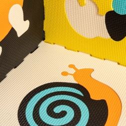 A szőnyeg minőségi EVA habból készült, csúszásmentes, vízálló és nagyon könnyen karbantartható – elég egy nedves ronggyal áttörölni. Az elemekből 3D szerkezetek is készíthetők, például kis házikó vagy karám, így biztonságos játéktér alakítható ki.