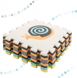 Ez a nagy habszőnyeg 9 darabból áll, egyenként 30 × 30 × 1 cm méretben, amelyek könnyen illeszkednek egymáshoz. A kontrasztos színek és a bájos állatmotívumok felkeltik a gyerekek érdeklődését, és ösztönzik a látást és a tapintást. A kivehető középső elemek egyszerű formaberakóként működnek – a gyerekek megtanulják felismerni a formákat és a megfelelő helyre illeszteni őket.