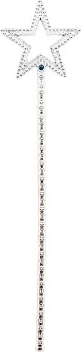 A pálca részletesen díszített ezüstcsillaggal és a tetején egy kis kék kővel varázslatos érzést nyújt a gyermekeknek.