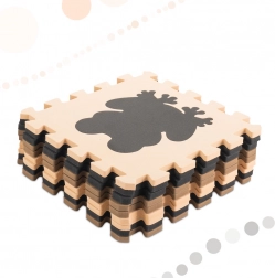 A kontrasztos színek és a domború struktúra serkentik a látást és a tapintást, a kivehető formák támogatják a finommotorika fejlesztését, a logikus gondolkodást és a formák tanulását. Az elemekből sík szőnyeg rakható össze, vagy 3D konstrukciók és kis elkerített játéktér hozható létre.