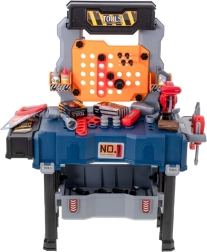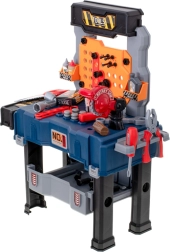 Ez a hordozható bőrönd könnyen gyerek munkapaddá alakítható, sok tárolóhellyel – az alsó ládától a nagyobb darabok számára, a szerszámoknak szánt perforált falon át, egészen a két polcig és a tágas munkalapig. A gyerekek megismerkednek az alap barkács-ismeretekkel, és biztonságosan kipróbálhatnak olyan tevékenységeket, mint a „csavarozás”, „kalapálás” vagy „fűrészelés”.