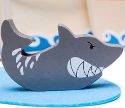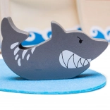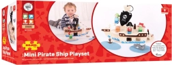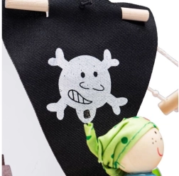 Ez a fa kalózhajó készlet mindent tartalmaz, amire a kis kalózoknak szükségük van a kalandjaikhoz. A csomag tartalmaz egy kapitányt, két kalózt, egy hajót, horgonyt, egy kincsesládát és egy cápát. Az összes játék elem praktikusan elhelyezhető a hajóban, így ideális utazáshoz és könnyű szállításhoz.