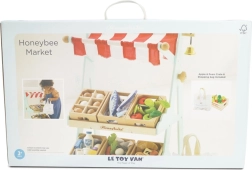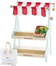 Le Toy Van Méhecskés Árusító Stand egy népszerű termék a Le Toy Van márkától, melynek hírnevét díjnyertes dizájnja és minősége biztosítja. Ez az árusító stand piros-fehér baldachinnal, csengővel és fa ládákkal van felszerelve. Inspirálja a gyerekeket a szerepjátékoknak köszönhetően, amelyek fejlesztik a szociális készségeiket és kreativitásukat.