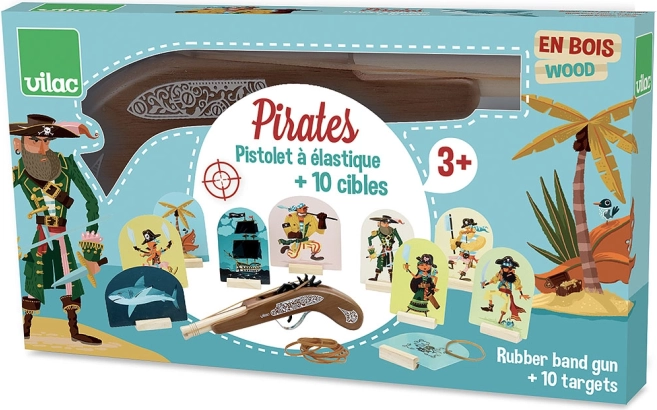 Vilac fa kalózpisztoly gumiszalagokkal és céltáblákkal