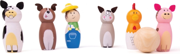 Ez a szórakoztató készlet 6 fa figurát és 1 fa bowlinggolyót tartalmaz. A gyerekek játszhatnak vele beltérben vagy kültérben, asztalon vagy padlón. Hosszú élettartamra és biztonságra tervezett, ez a készlet nagyszerű eszköz a motorikus készségek fejlesztéséhez.