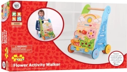 A masszív fa szerkezet, a biztos fogantyú és a színes kerekek segítik a biztonságos, magabiztos mozgást a totyogóknál.