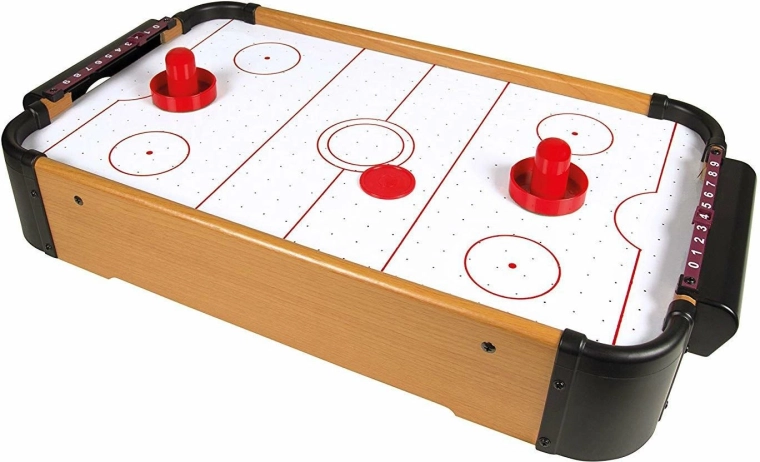 Az asztal masszív fa kerettel, integrált kapukkal, mindkét oldalon manuális tolós pontszámlálóval rendelkezik, és két ütővel és egy koronggal kerül forgalomba. A játék fejleszti a koncentrációt, a kéz–szem koordinációt és a fair play-t.