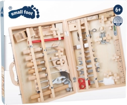 A small foot Deluxe szerszámos bőröndje praktikus és masszív, ideális azoknak a gyerekeknek, akik szívesen fedezik fel a javítás és alkotás világát. Minden eszköznek megvan a kijelölt pozíciója, és rögzített, hogy szállítás közben is a helyén maradjon. A minőségi kivitel fa, fém és műanyag felhasználásával hosszú élettartamot és hiteles szerszámhasználati élményt biztosít.