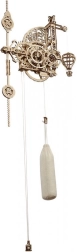 Az óra széles finomhangolási lehetőségeket kínál – az ingák finom kiegyensúlyozása, a ballon sebességének szabályozása és az egyensúlyi helyzet pontos beállítása. A felhúzást a vászonzsákban lévő fő súly biztosítja, amelyet homokkal vagy sóval lehet megtölteni, az idő beállítása mechanikus retesz segítségével történik. Az ipari forradalom által inspirált dizájn örömet okoz a műszaki rajongóknak, a modellezőknek és a steampunk esztétika kedvelőinek.