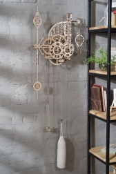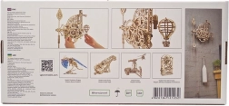 A Ugears Aero egy mechanikus falióra minőségi rétegelt lemezből, amelyet ragasztó nélkül szerelhet össze. A feltárt óraszerkezet ingával és súllyal lenyűgöző betekintést nyújt a precíz mérnöki megoldások világába. Az időt két, az óramutató járásával ellentétesen forgó számlapról olvashatja le, miközben a dekoratív hőlégballon rendszeresen emelkedik, és minden egész órában süllyedéssel jelez.