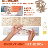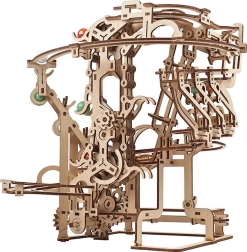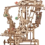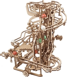 Fedezze fel a szórakozást és a műszaki eleganciát a UGEARS fa mechanikus golyópályájával lánchajtással. A kézi mechanizmus mozgásba hozza a színes golyókat három egyedi, akadályokkal teli szakaszon, miközben a nyitott szerkezet lehetővé teszi a fogaskerekek és áttételek működésének megcsodálását. A modellt össze lehet kapcsolni más készletekkel még látványosabb pálya érdekében. Tökéletes választás kreatív rajongóknak, akik szeretik a kihívásokat és a precíz fa modelleket.