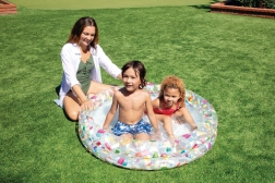 Ez a kör alakú gyerekmedence 122 × 25 cm-es méretével remek választás kerti vagy teraszos nyári mókához. A sekély víznek (ajánlott magasság legfeljebb 14 cm) köszönhetően biztonságos és kényelmes felfrissülést nyújt a legkisebbeknek. A készletben színben harmonizáló strandlabda és gyerek úszógumi is található (mindkettő kb. 51 cm), így a szórakozás már az első feltöltéstől garantált.