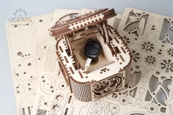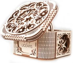 Az elegáns, fából készült UGEARS ékszerdoboz egy mechanikus 3D puzzle, amely ragasztó nélkül állítható össze, és összeszerelés után valóban működik. Egyedi nyitásmechanizmust, minőségi kidolgozást és simán futó mechanikát kínál az átgondolt fogaskerekeknek köszönhetően. Ideális a technika és a design szerelmeseinek, fejleszti a finommotorikát és a fantáziát, és egyedi tárolóhelyet biztosít az értékeknek.