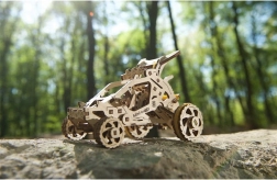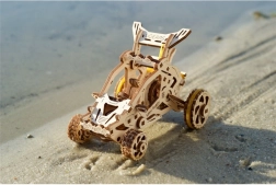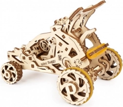 A UGEARS mini buggy szórakoztató és ötletes mechanikus építőkészlet természetes fából, amely ötvözi a hagyományos anyagot a modern mérnöki megoldásokkal. A precízen kivágott elemek tökéletesen illeszkednek, és összeszerelés után a kerekek és a fogaskerekek egyenletes mozgását mutatja be.